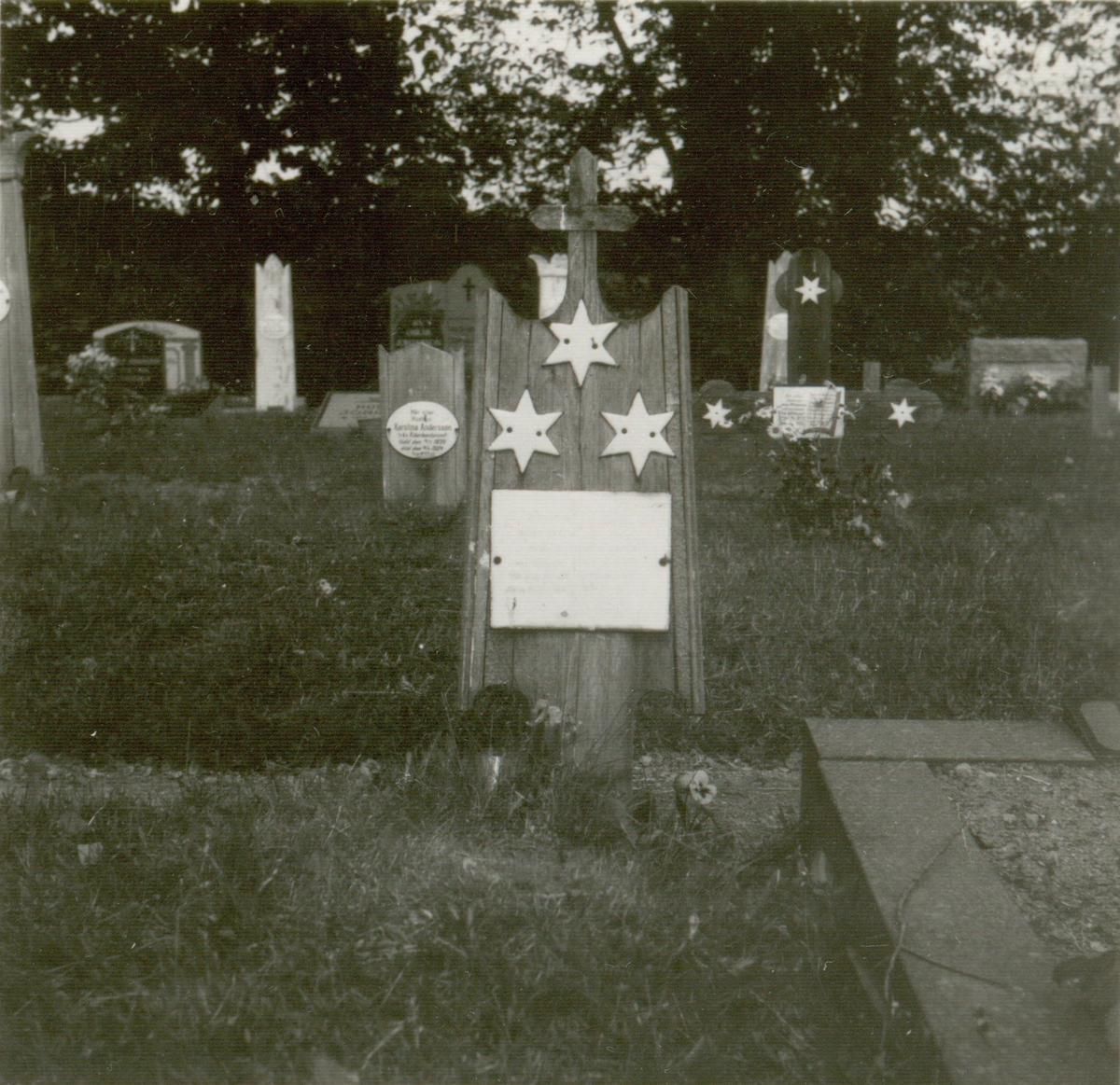 Titel: Gravmonument med emaljplåtar från Ankarsrum.