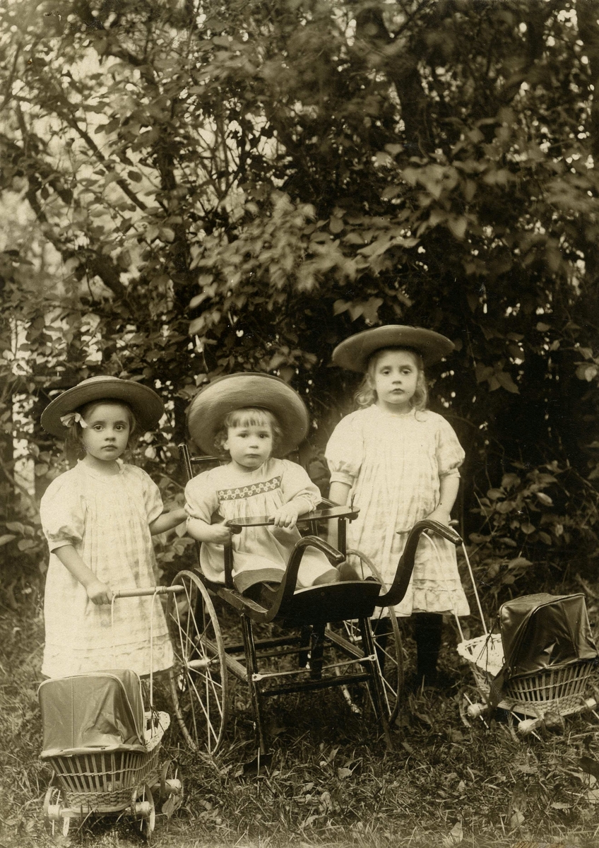 Vanda, Folke, Stina Strümpel. Barn till rådman August Strümpel och hans hustru Emelie. Vanda född 21/5 1904, Stina född 1/4 1907. Stina född 1/10 1902, död 30/1 1987. Fotot taget 1908.