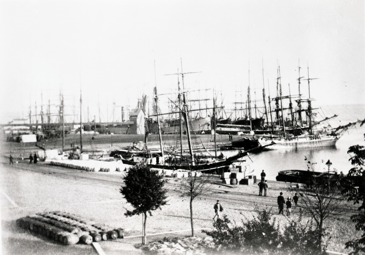 Den första elevatorn till Ångkvarnen syns mitt i bild.