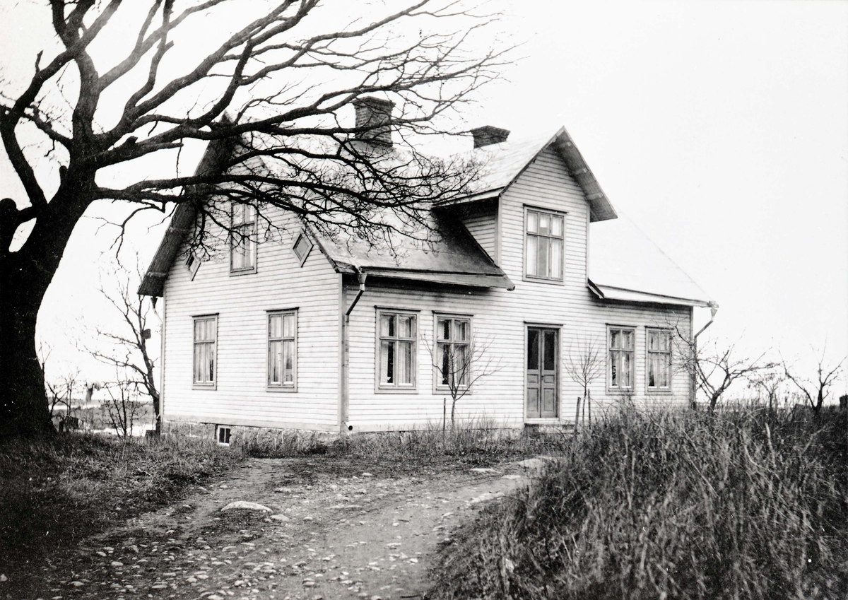 Bostadshus med frontespis, papptak och liggande träpanel på Stensö.
