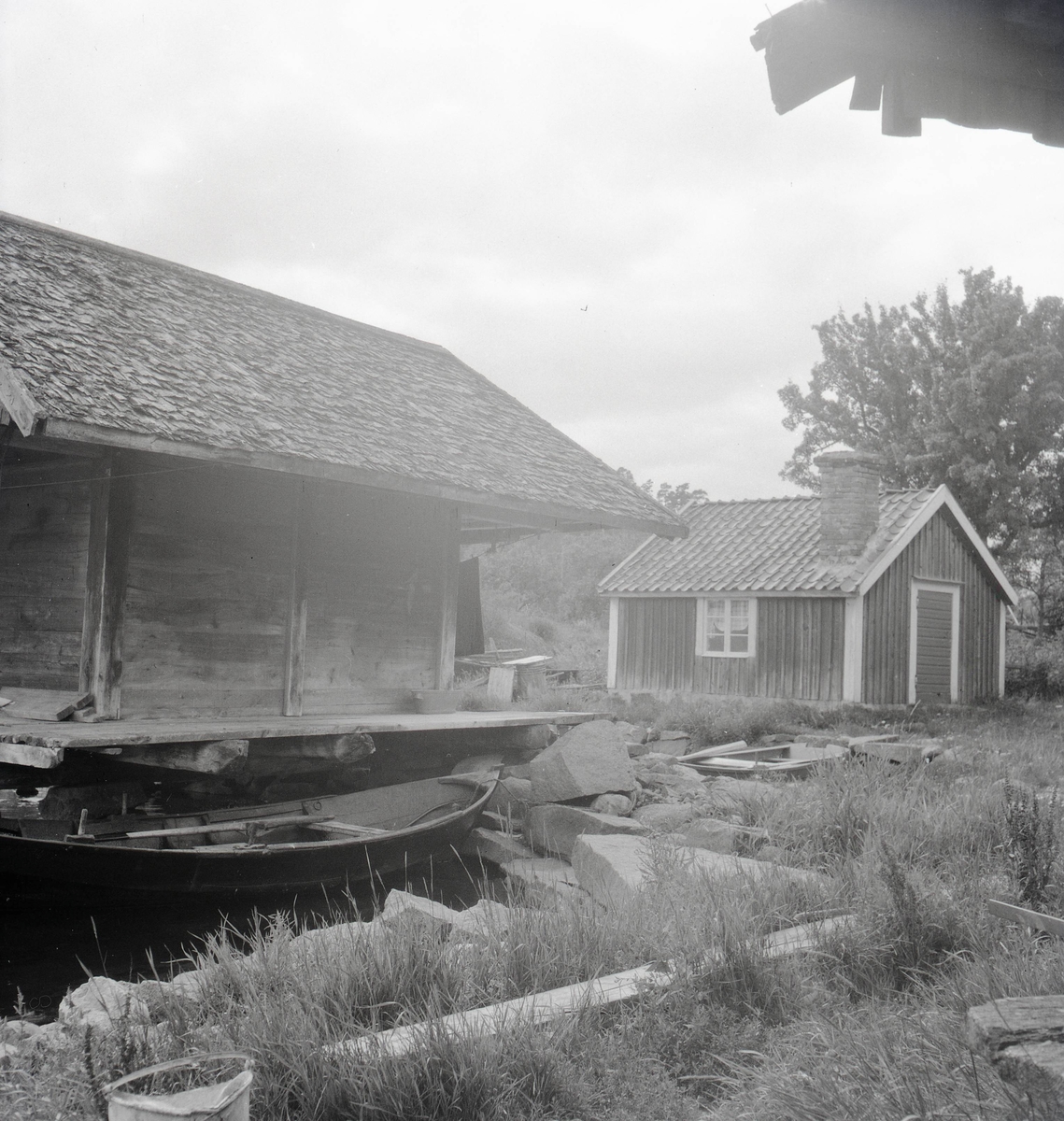 Bod med brygga och svale runtomkring. Tillhör Axel Johansson, Klintemåla.