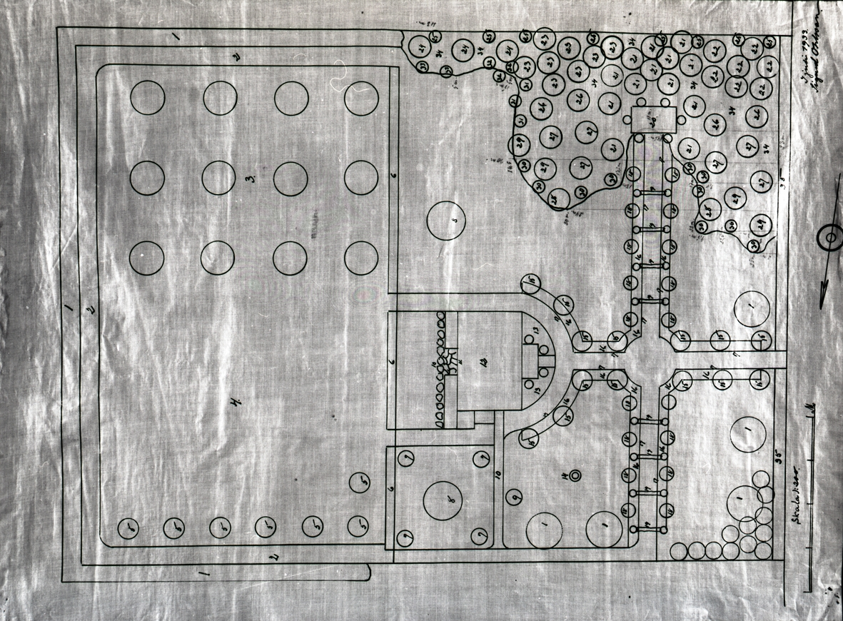 Lärarbostad. Arbetsritning över trädgård i Böda juli 1933 av Sigurd Ohlsson.