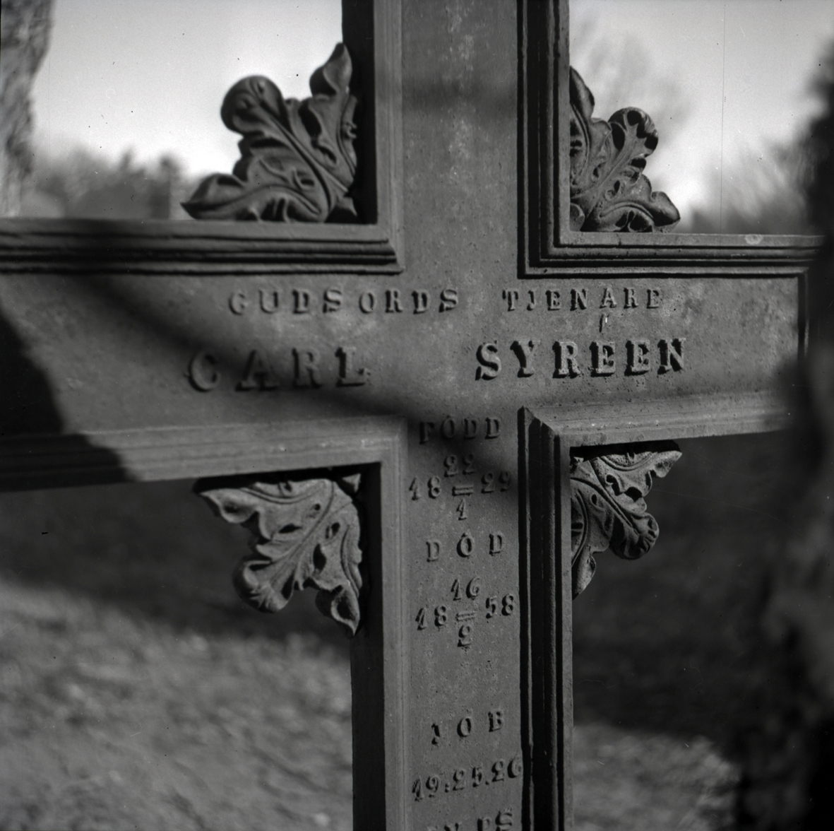 Gravkors där det står: Guds ords tjenare, Carl Syréen, Född 22/1 1829, Död 16/2 1858.