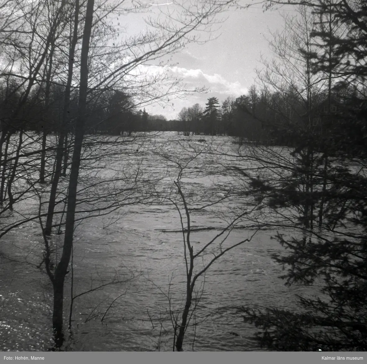 Emån som flyter över trädrötter i Mönsterås kommun.