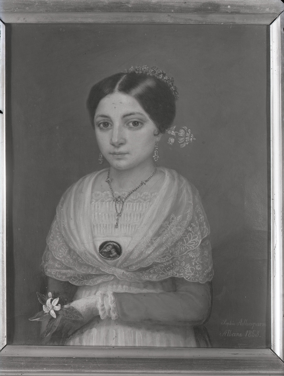 Titel: Porträtt, signerat av konstnären Sophie Adlersparre, Albano 1853.