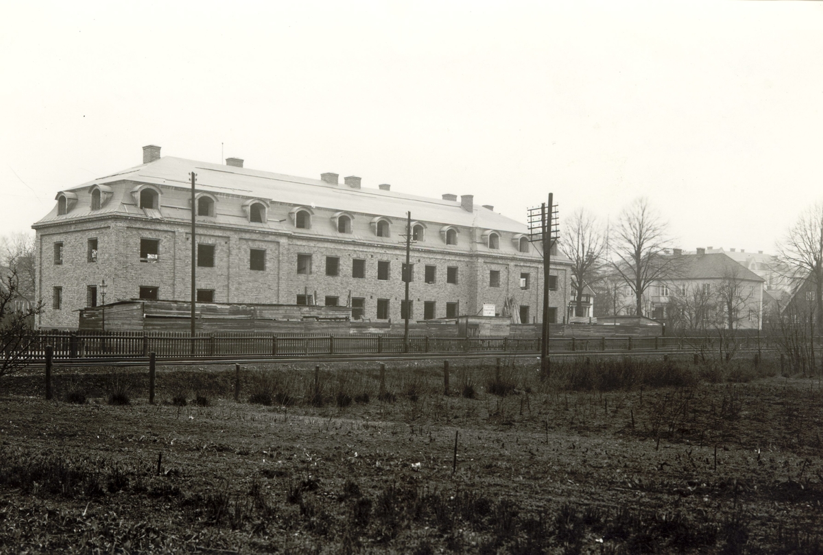 Det s k Ludwigssonska huset på Järnvägsgatan under byggnad 1926-27.