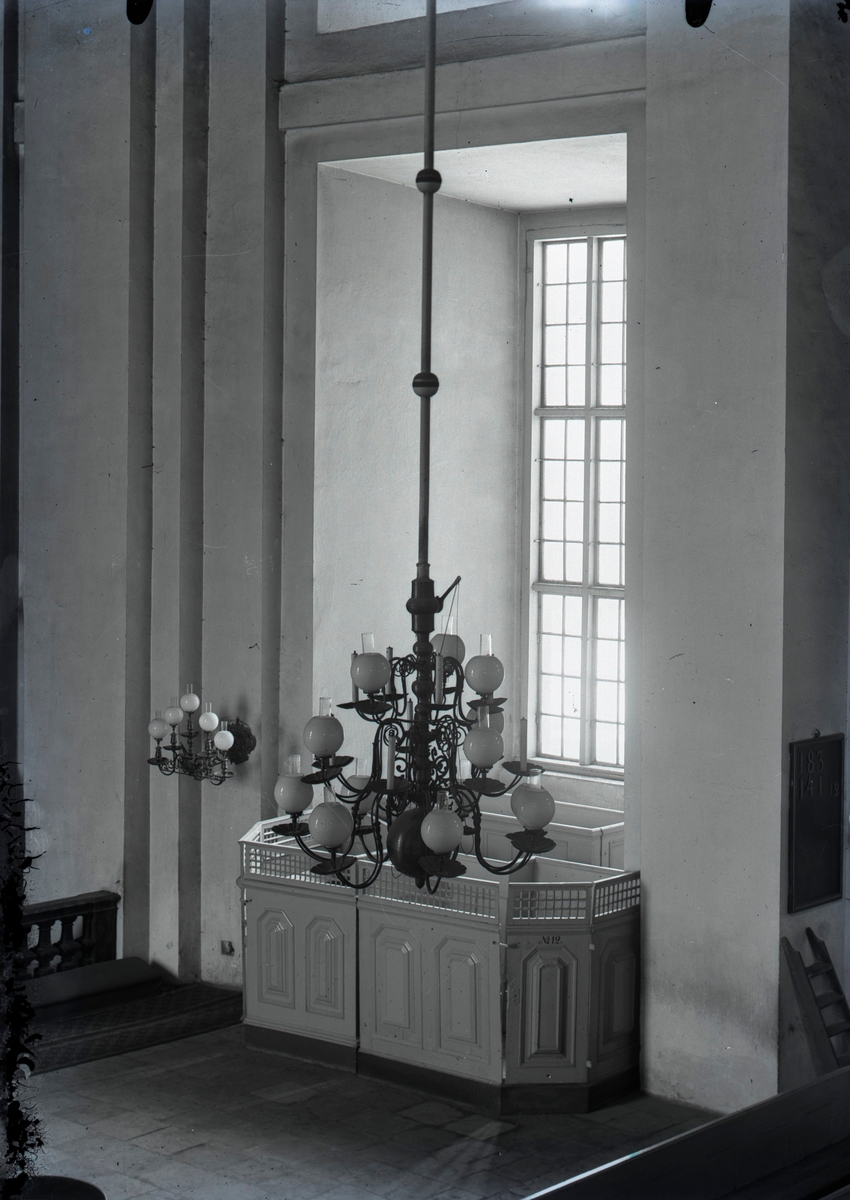 Titel: Ljuskrona för gas sedd från sidoläktaren.