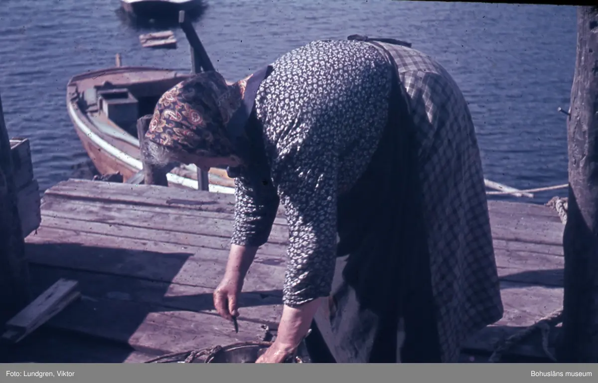 Kvinna som rensar nyfångad makrill