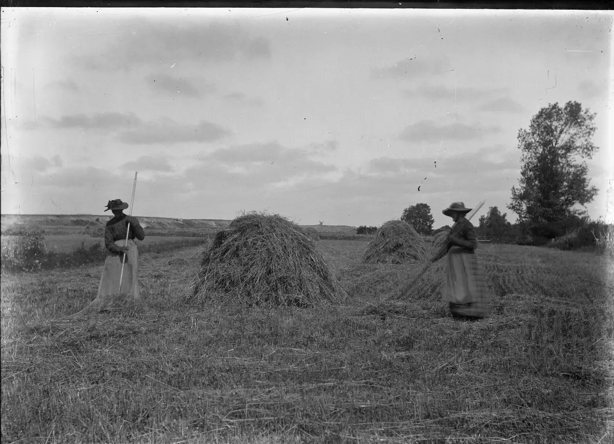 Bild 77. Smiss mor Gretä u Kauprä mor Gret-Majän räkar havrä u läggar stack.