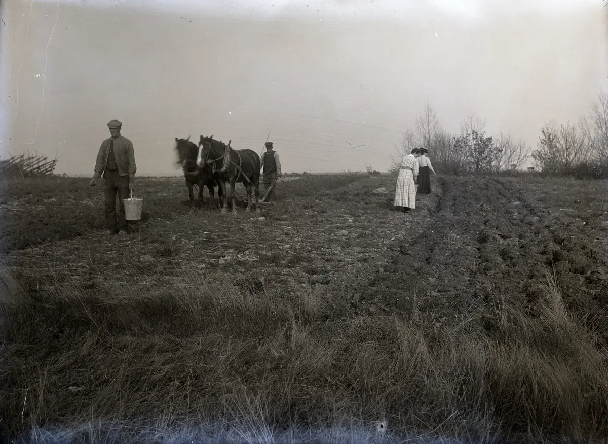 Bild 132. Majken o Maja sättar pärår Halsrä Vilhem plögar