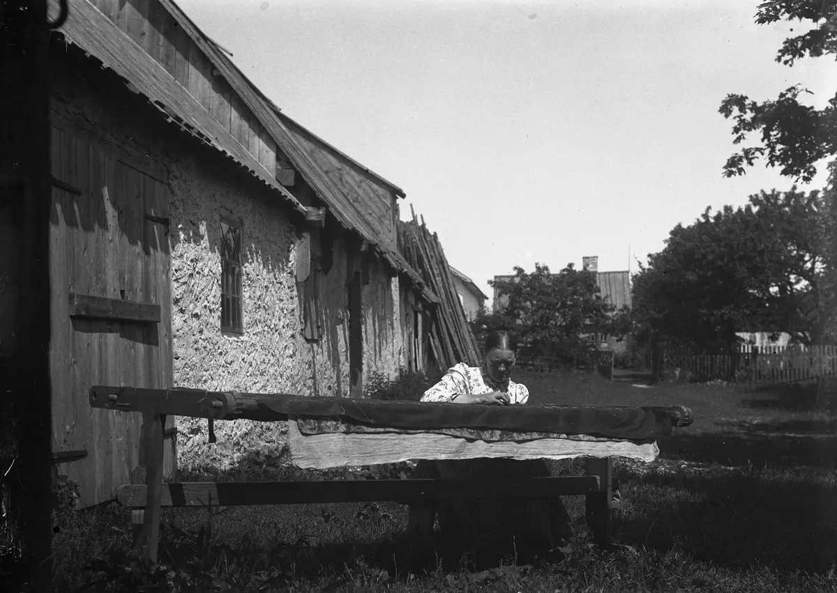 Bild 313. Maria Mårtensson, stickar täcke
