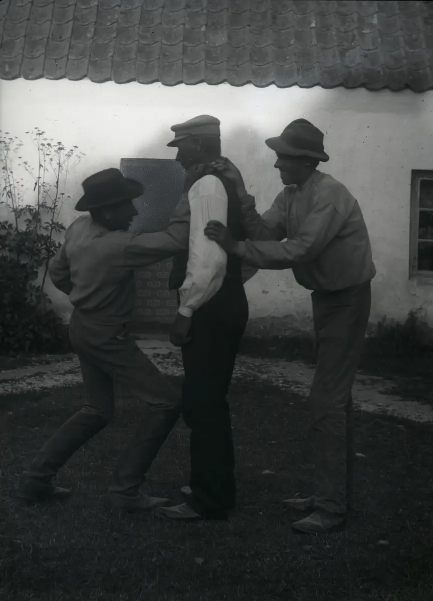 Bild 516. Halsrä-drängar drägar krokfingar, fran vänstar Karlsson, Hans Karlsson, Vilhelm Karlsson