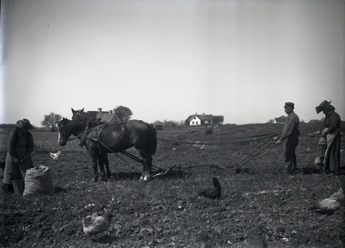 Bild 136. Lina Jakobsson sättar pärår, Botls Lars plögar