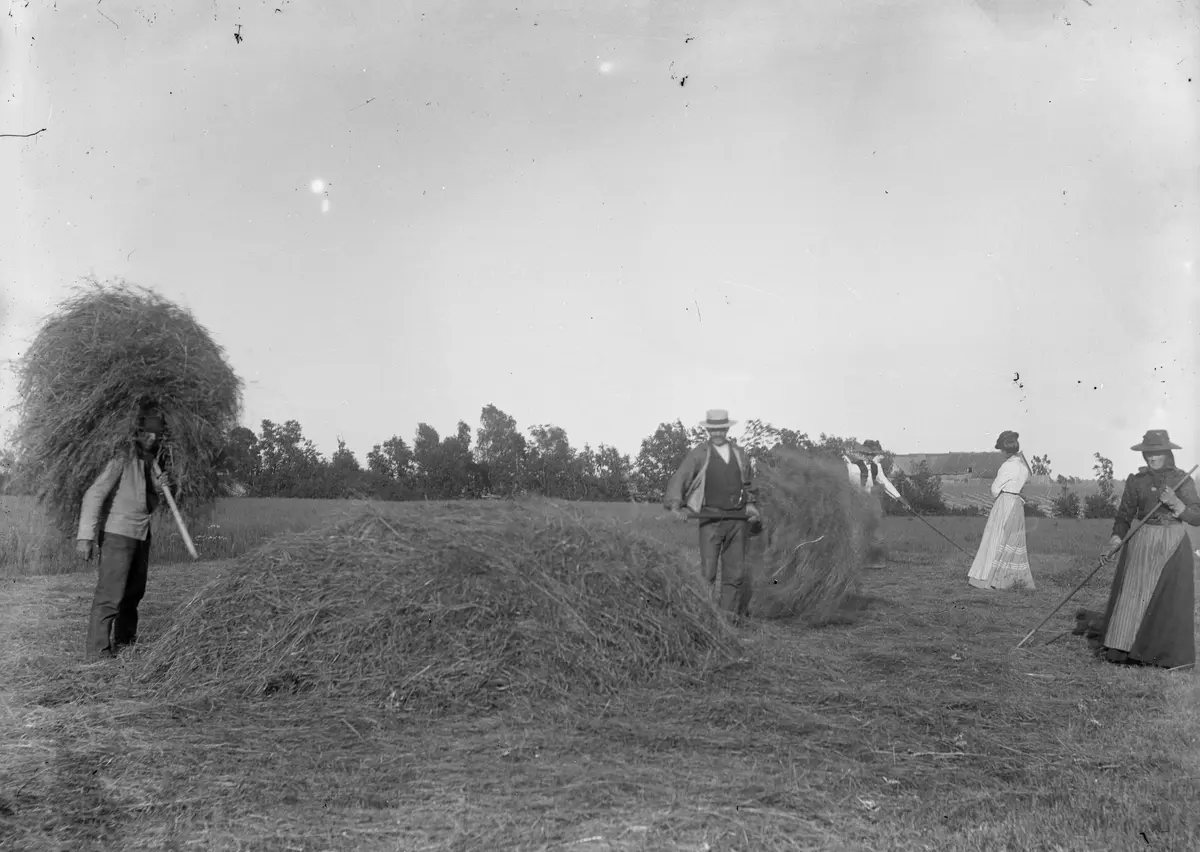 Bild 101. Jakob Karlsson kvinnfålki räkar u bjärar ihop till stack