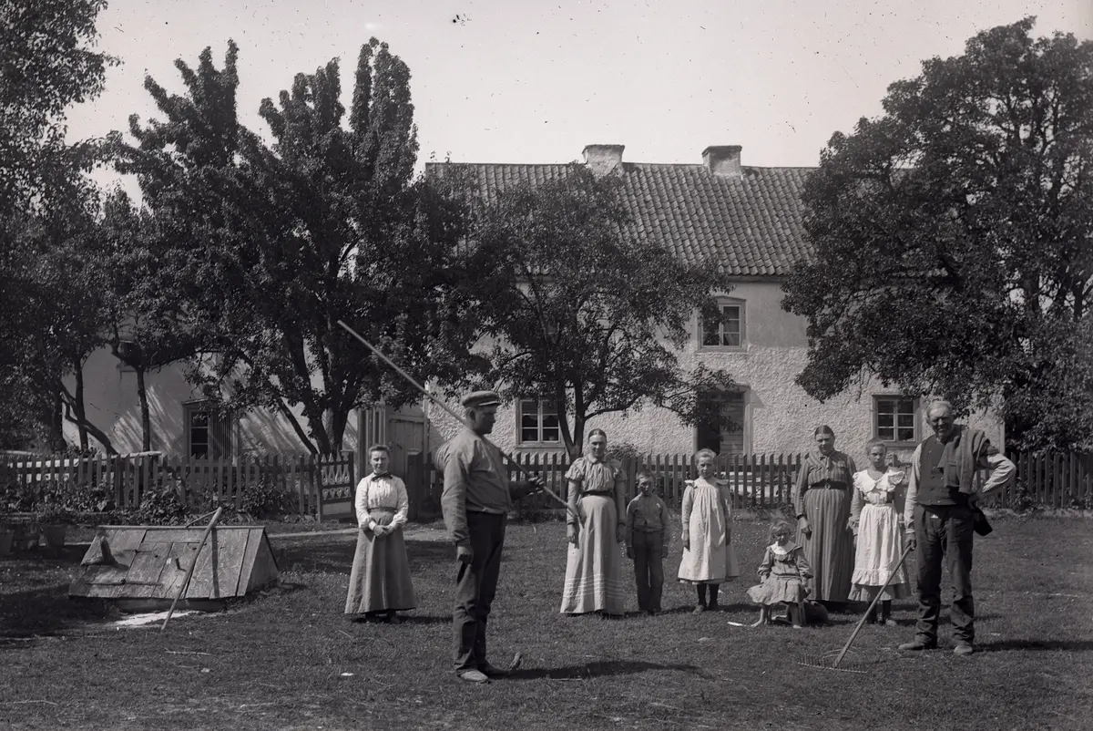 Bild 910. Edvard Larssons Häusrä, familj u byggning