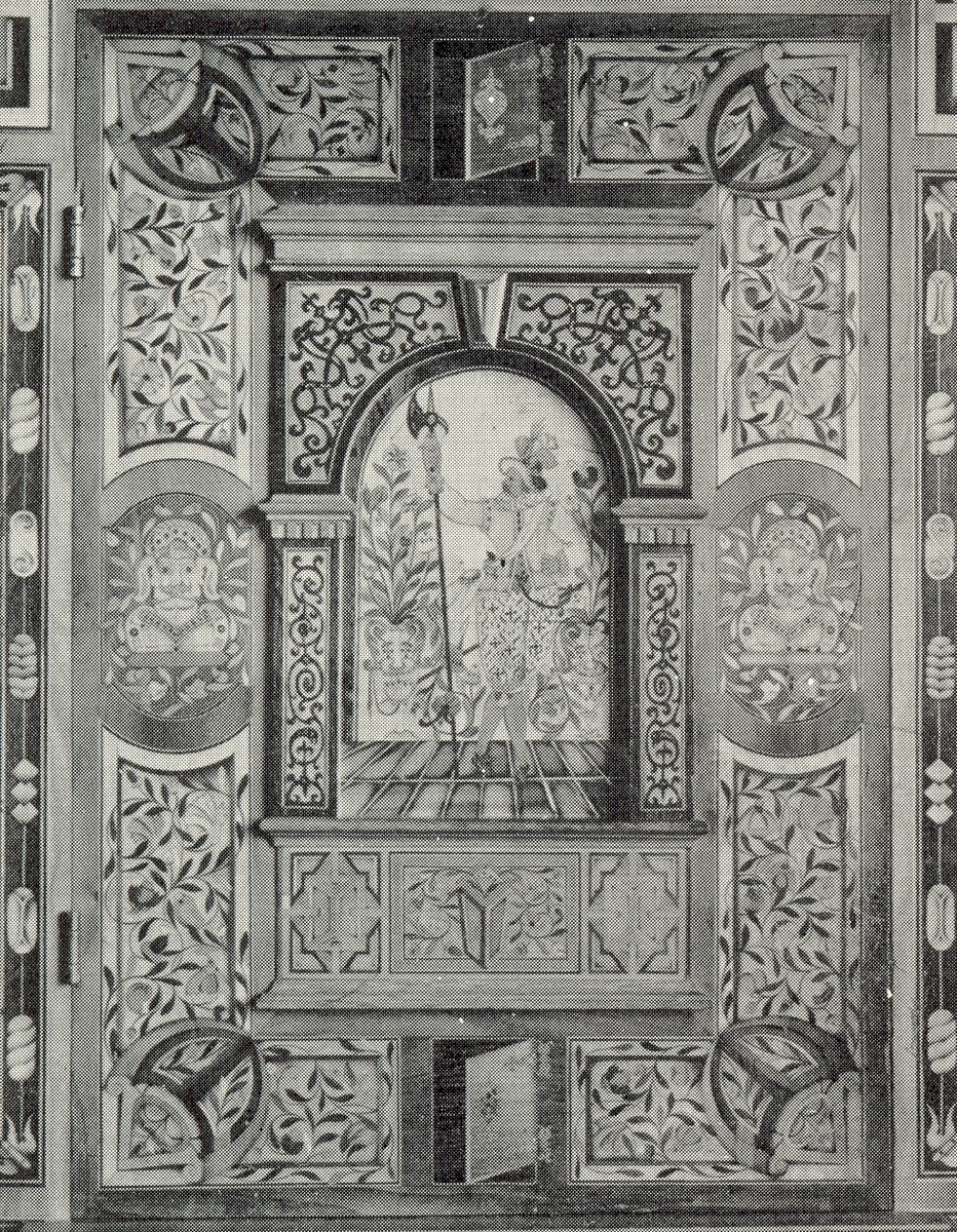 "Die Kriegsstube" in the Town Hall at Lübeck. Details of door with intarsia decoration by Anton Evers the younger.
