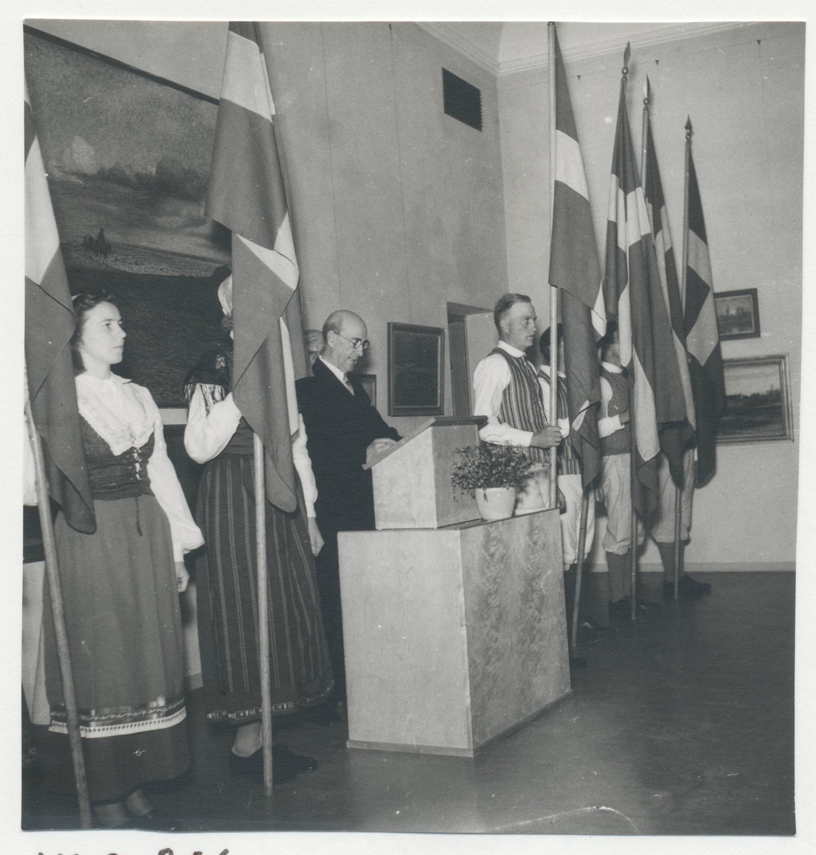 Motiv från en kongress med deltagare klädda i folkdräkter.