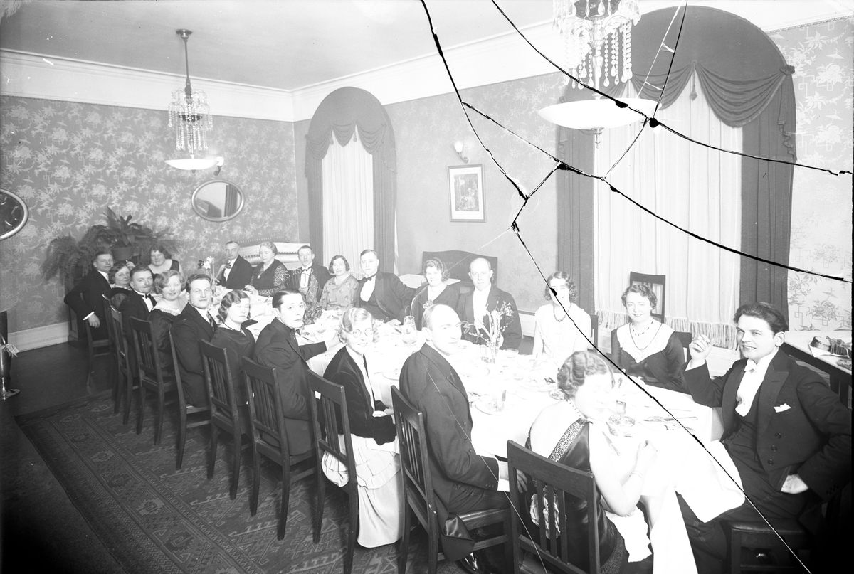 Frisörföreningen i Kalmar 08/24, glasplåten trasig men på bild två digitalt lagad.