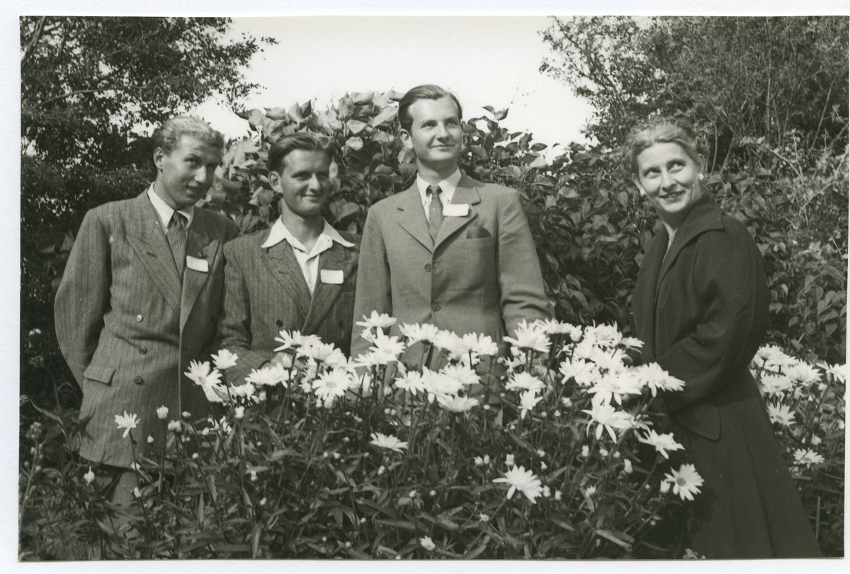 Gruppfoto av tre män och en kvinna någonstans i Kalmar.