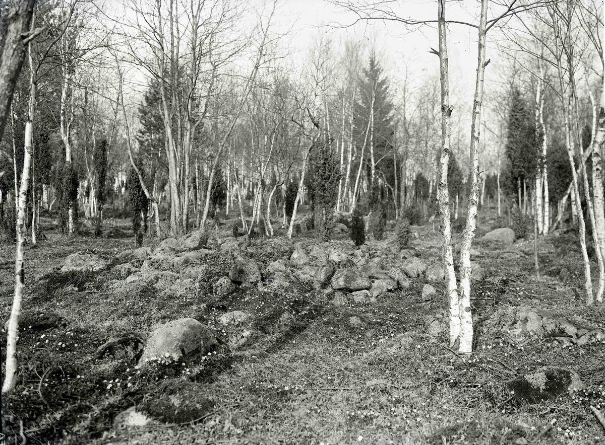 Ett gravröse i skogen. En fornlämning från bronsåldern.