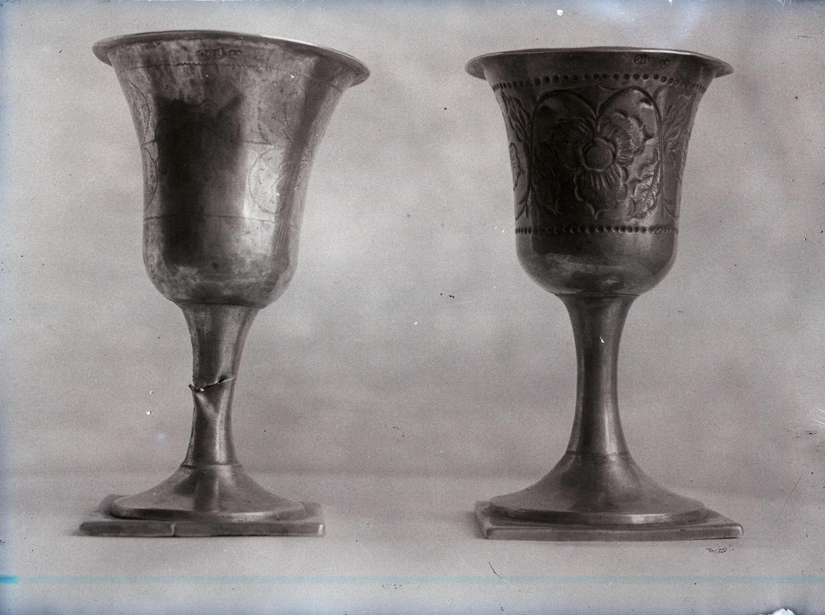Två silverbägare på fot.