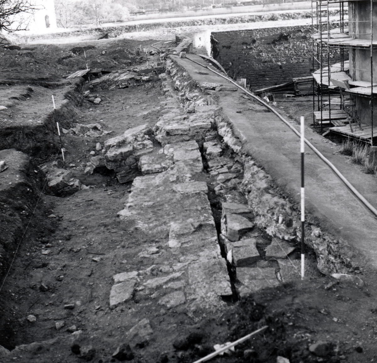 Utgrävning på Kalmar slott. Östra schaktet i fullt utgrävt skick, sett mot norr. Rapporten: Krutkammaren, vallgraven, västra vallen och brunnar.