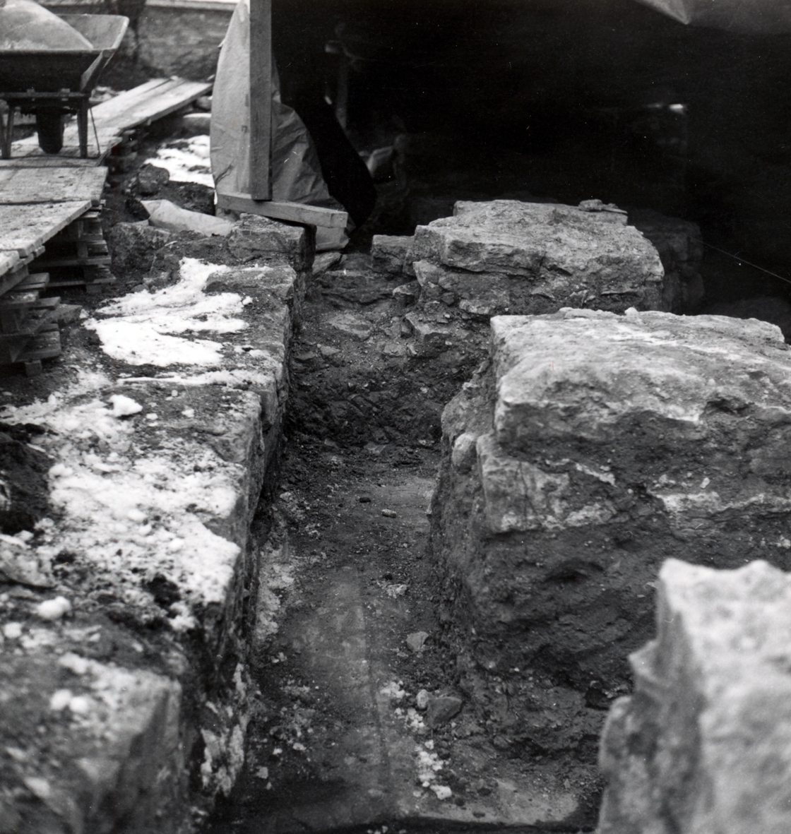 Utgrävning på Kalmar slott. Plintarna väster om södra muren.
