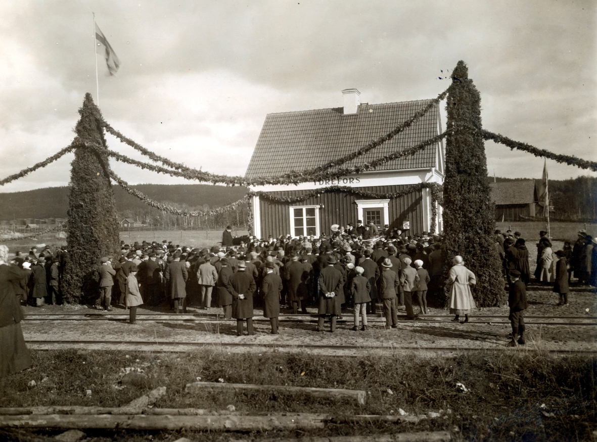 Från den vid Ydrefors station under år 1924 av Landshövding J Falk förrättade invigningen av Vimmerby - Ydre Järnväg.