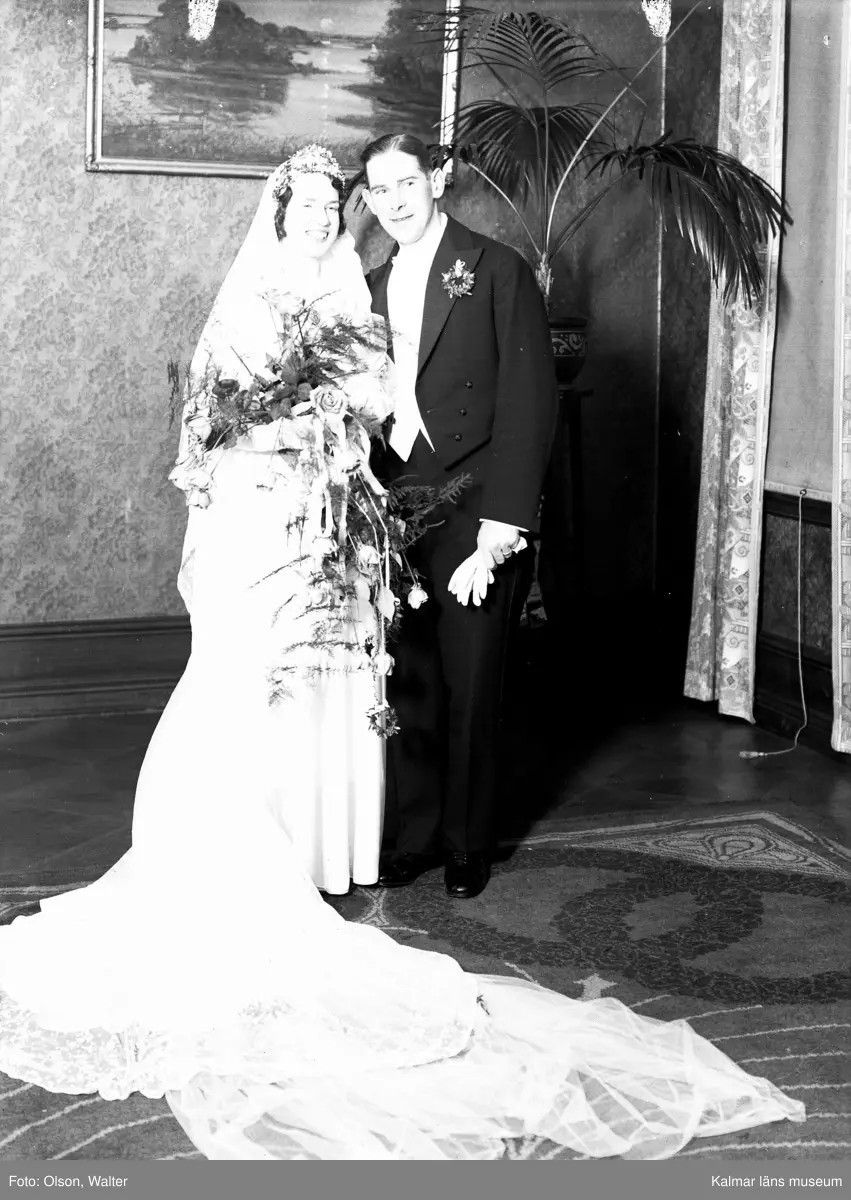Bröllopsbild. Enligt Walter Olsons journal är bilden beställd av forstmästare Sven Jansson ifrån Pataholm. Kalmar läns museum känner inte till om den personen är avbildad.