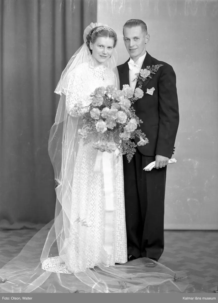 Bröllopsbild. Enligt Walter Olsons journal är bilden beställd av Max Rydberg ifrån Johannesborg 4 i Kalmar. Kalmar läns museum känner inte till om det är den personen som är avbildad.