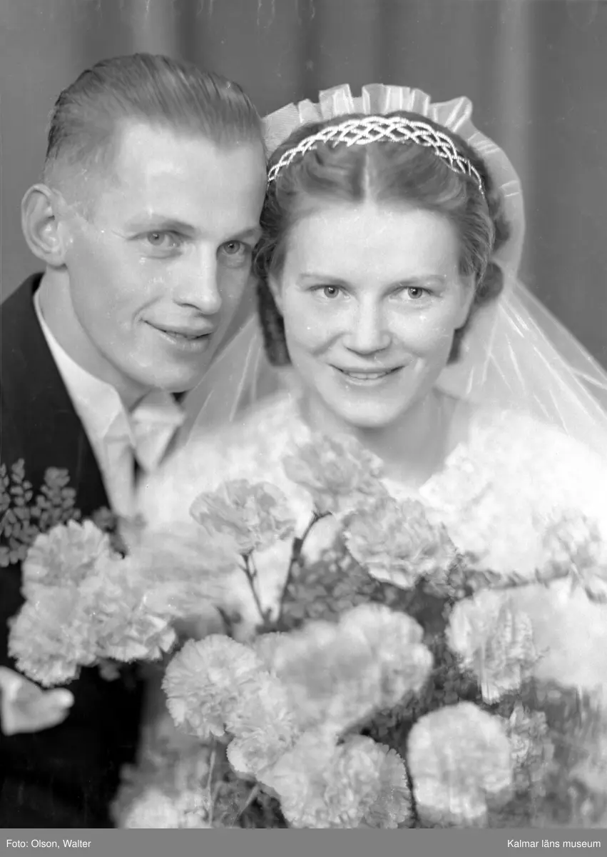 Bröllopsbild. Enligt Walter Olsons journal är bilden beställd av Max Rydberg ifrån Johannesborg 4 i Kalmar. Kalmar läns museum känner inte till om det är den personen som är avbildad.
