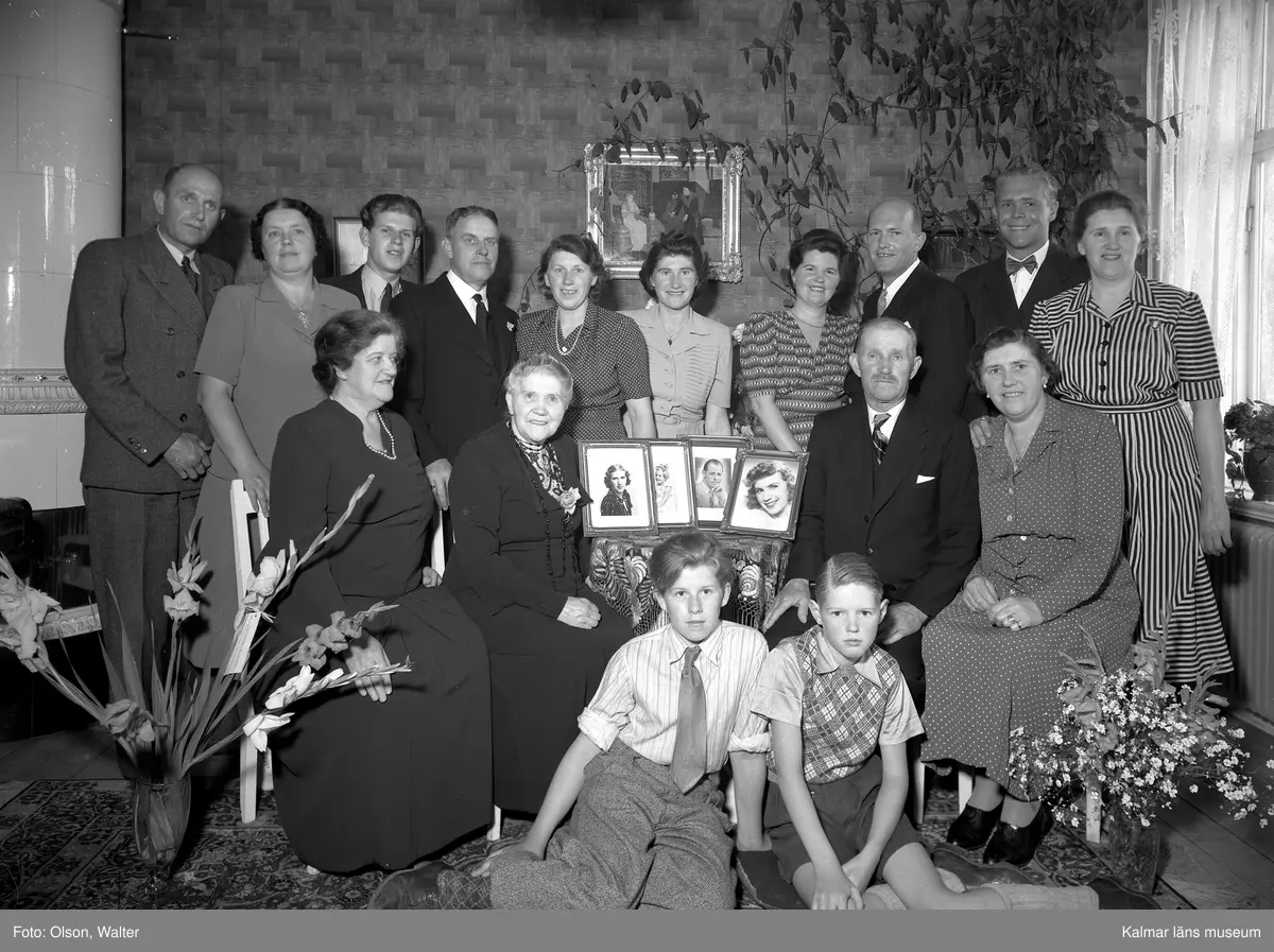 Troligen firande av guldbröllop med särskild bild på hustrun/modern.