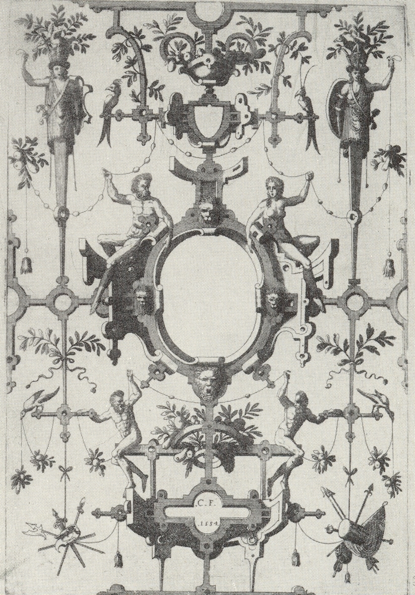 Cornelis Floris (Till vänster titelbladet till "Veelderley Veranderinghe van grotissen..." Första boken tryckt 1556. Till höger Blad med grotesker daterat 1554.