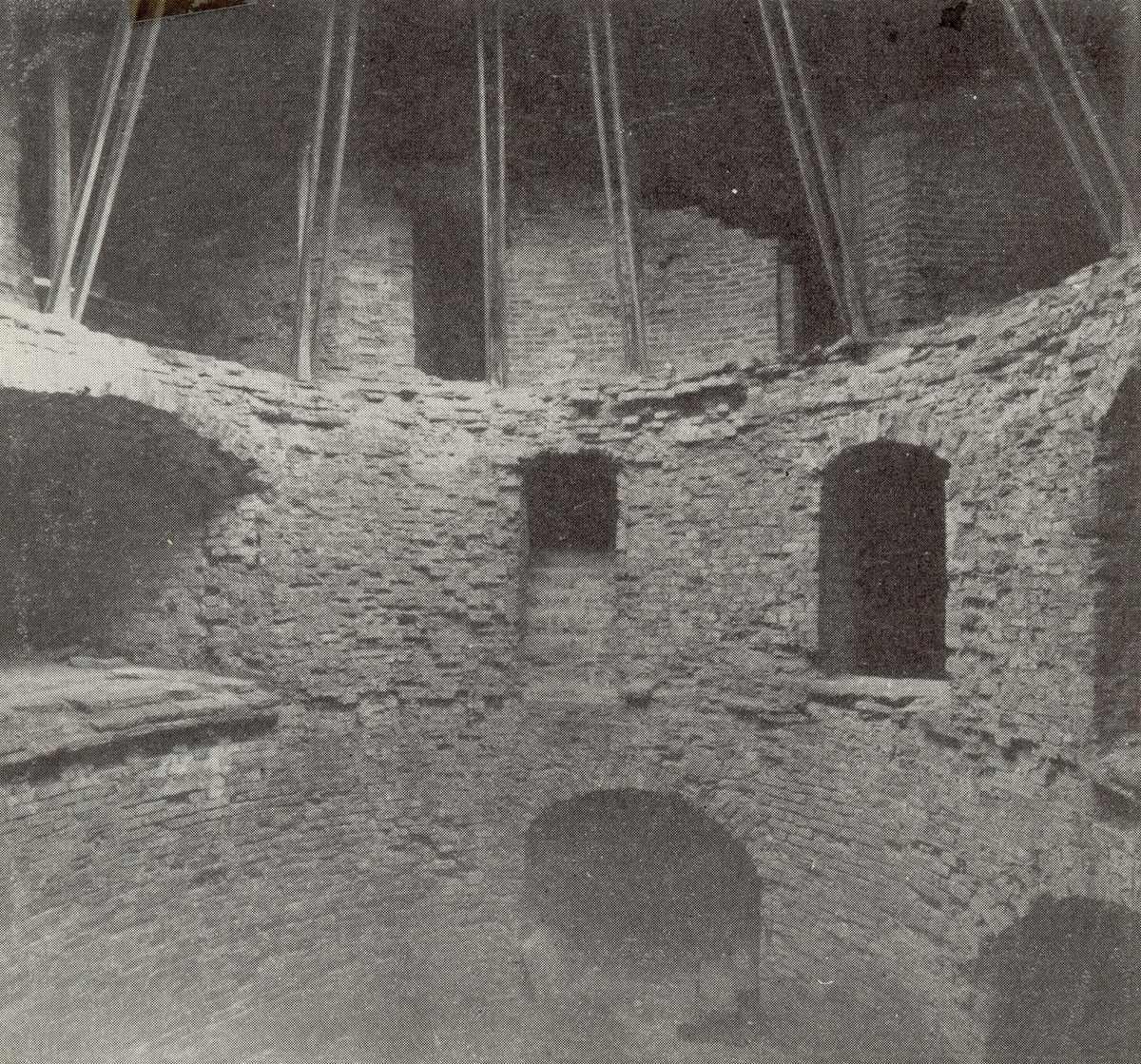 Västra postejen. Centralrummets interiör mot söder. Det nedersta murhålet mitt i bilden för
