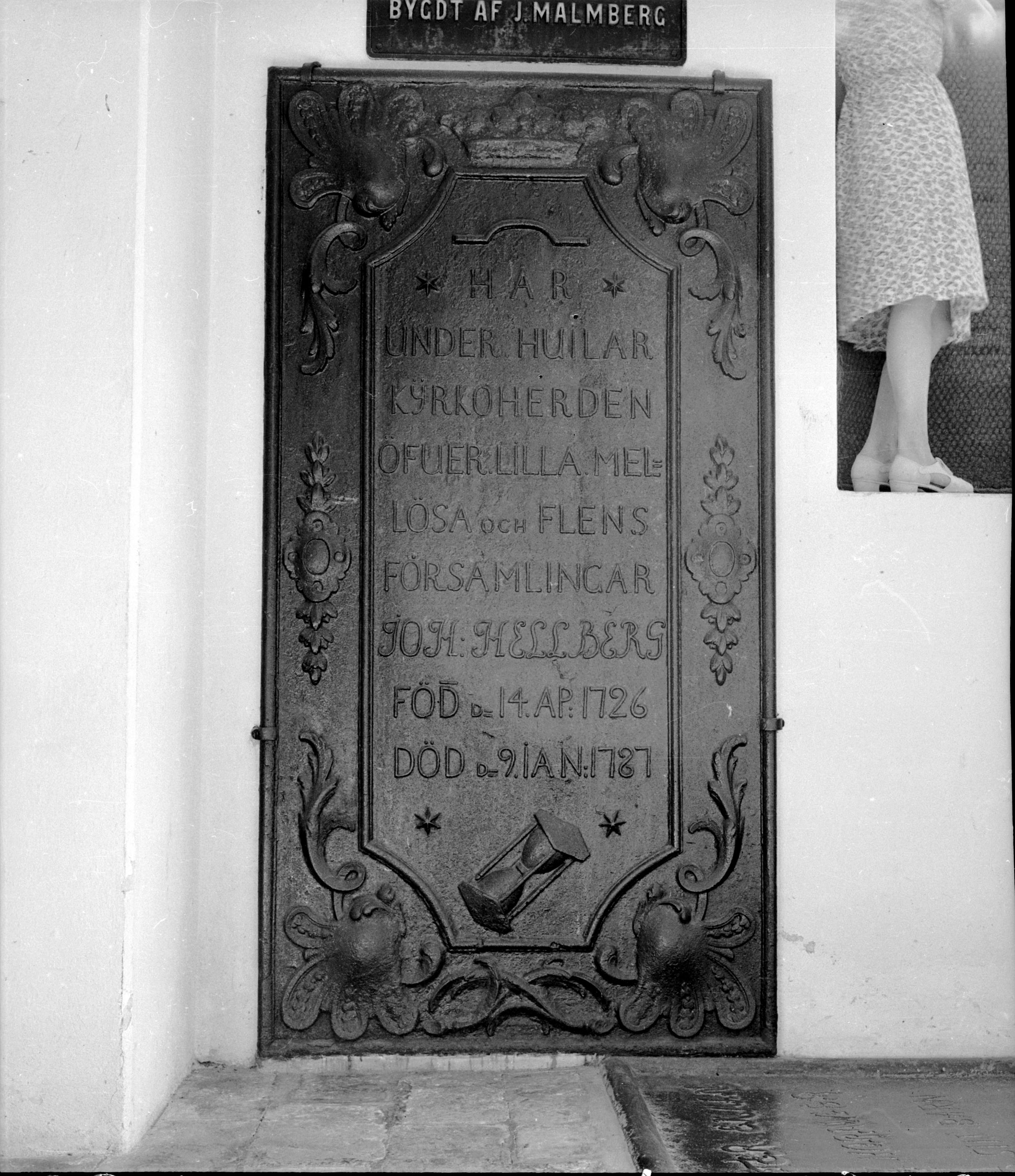 Gravhäll över kyrkoherde J. Hellbers, död 1787.
