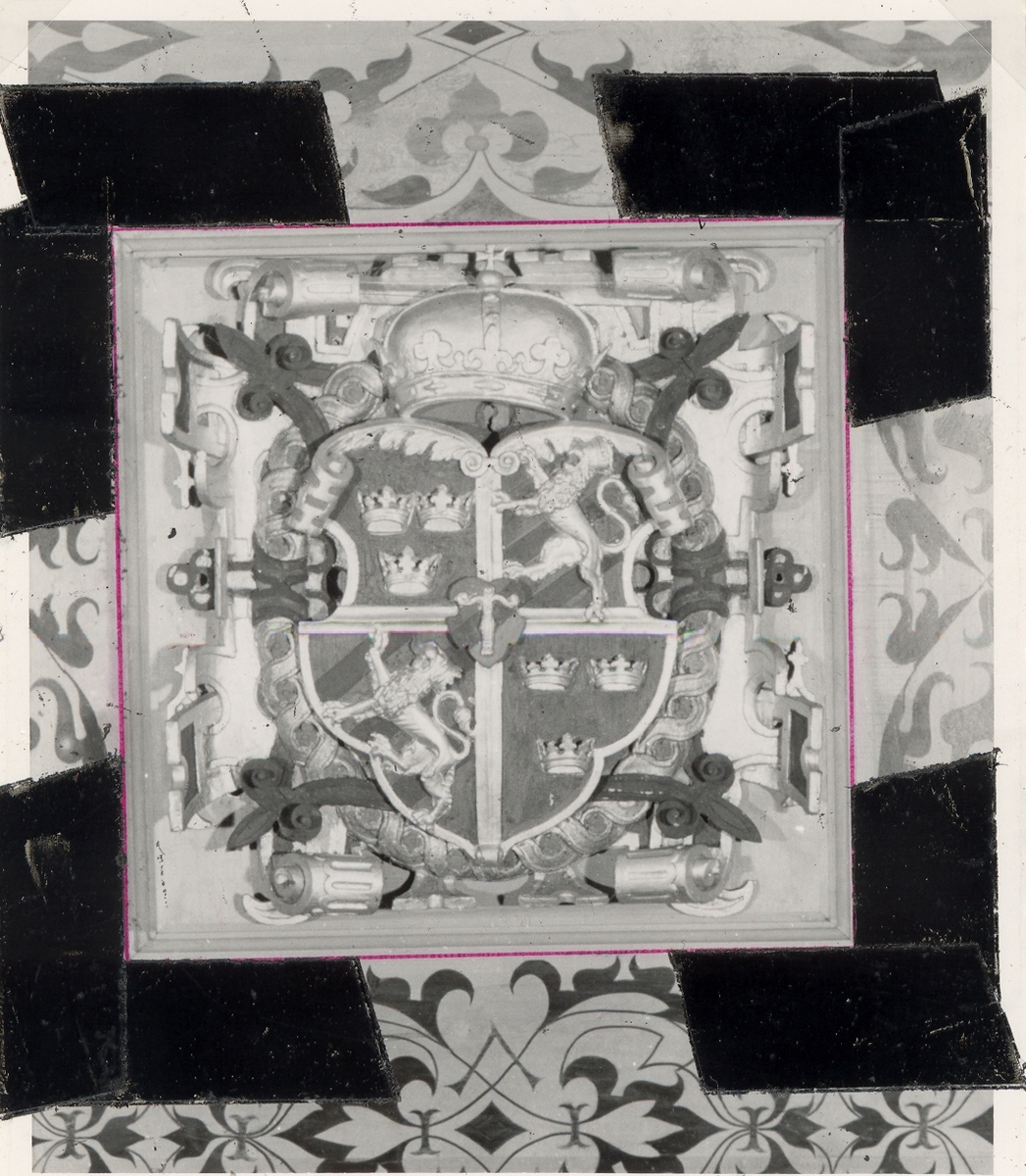 Titel: Detalj av kassettaket i Kungsmaket på Kalmar slott. På vissa plåtar har Martin Olsson klistrat eltejp för att markera hur bilden skulle beskäras i boken.