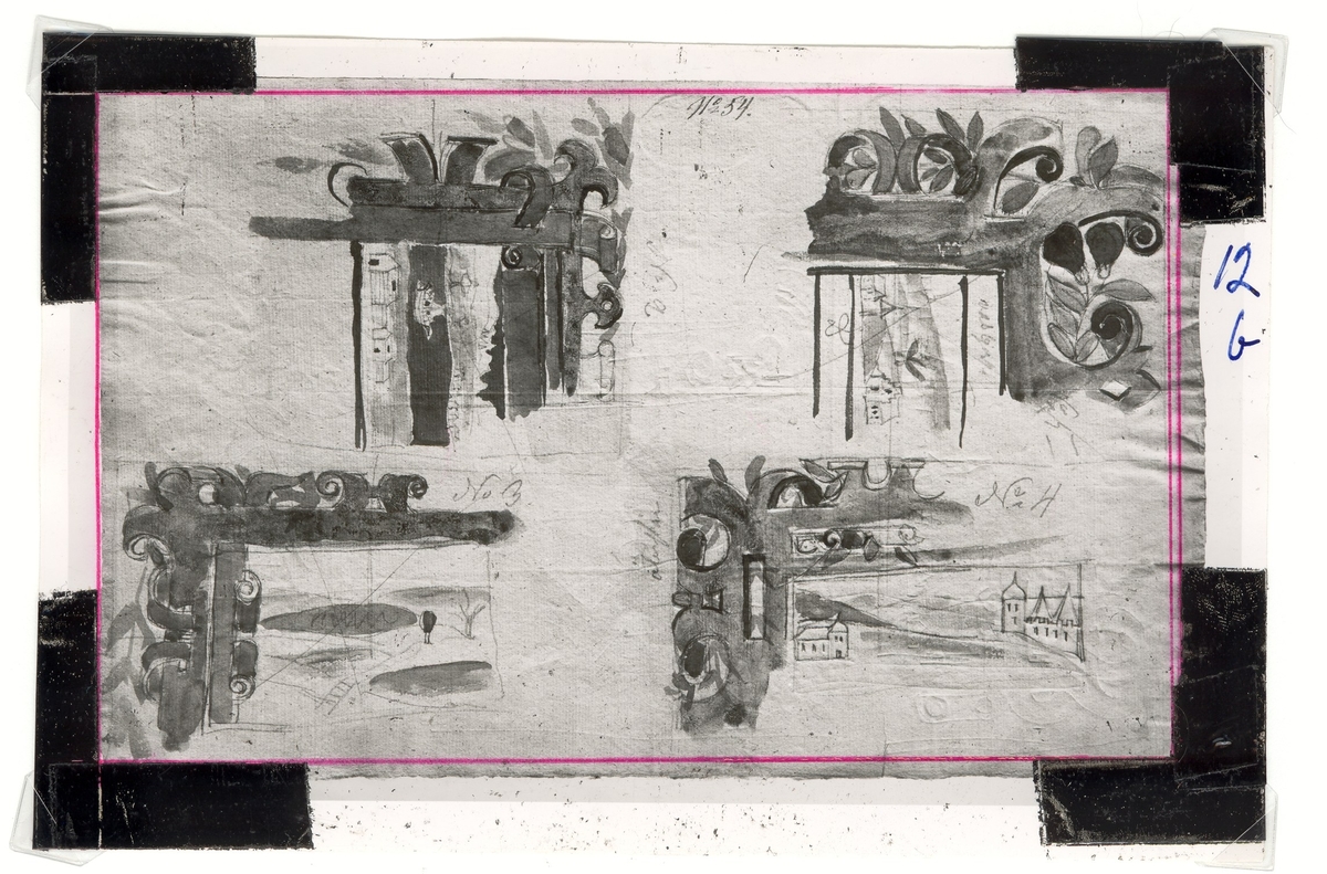 Kalmar slott, kungsmakets panel. Detaljskisser av Nils Månsson Mandelgren 1848.