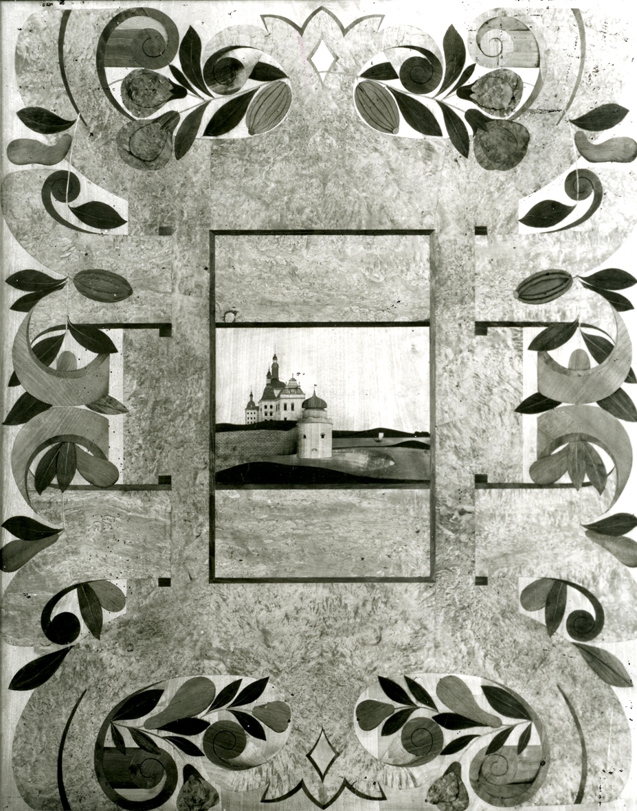 Kalmar slott: Detalj av Kungsmakets panel. Mittbilden Läckö slott.