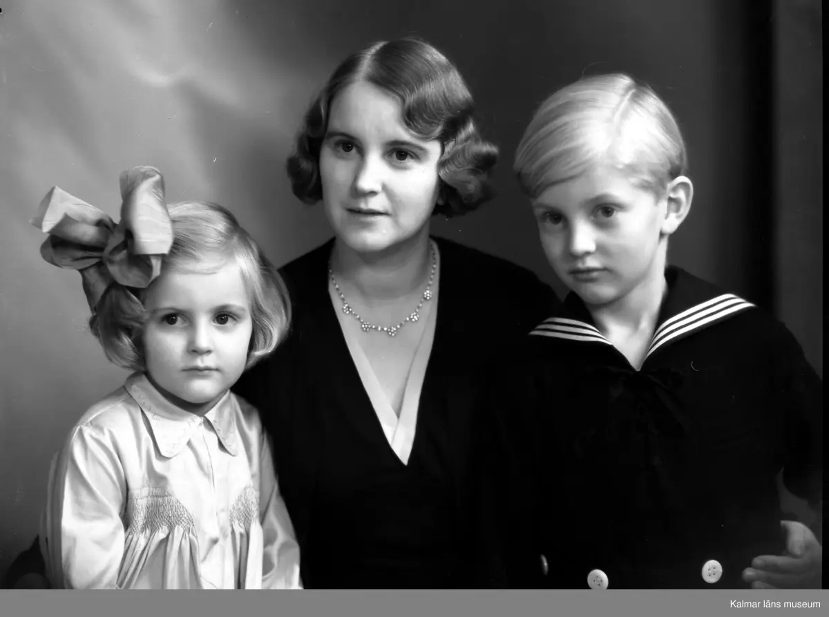 Ateljébild på en flicka i hårband, kvinna och pojke. Enligt Walter Olsons journal är bilden beställd av kapten S Hjort.