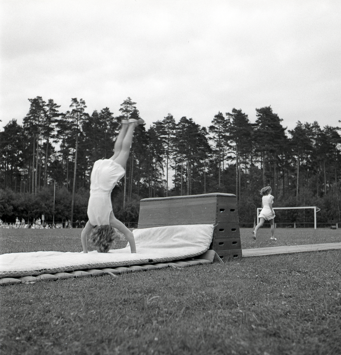 Uppvisning på plint av kvinnliga gymnaster på Gymnastikens dag.