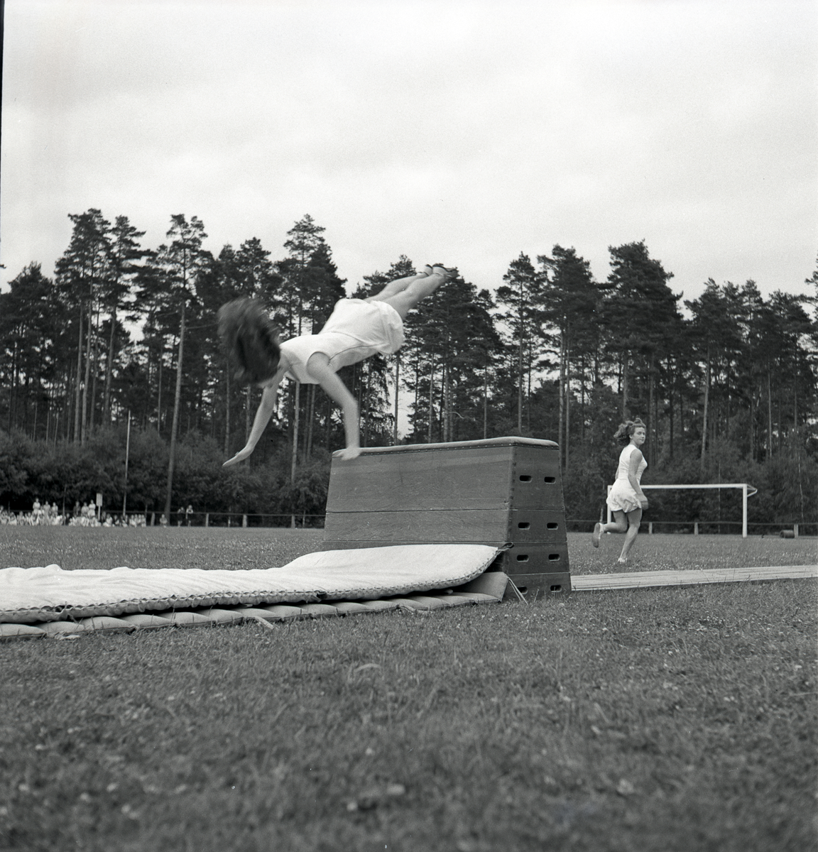 Gymnastikuppvisning på plint av några kvinnliga gymnaster på Gymnastikens dag.
