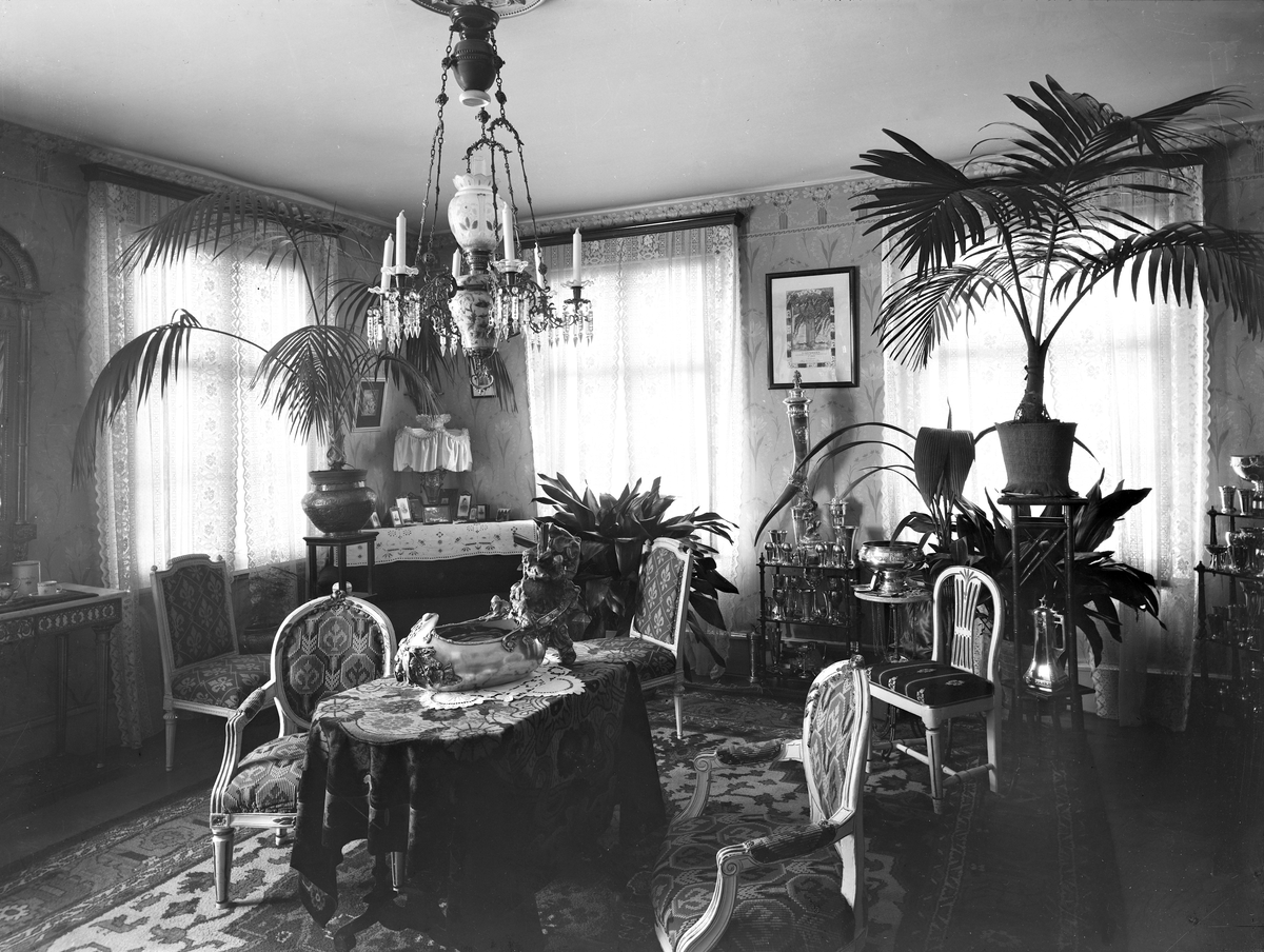 Wieslanders hem på Skolgatan i Växjö. Interiör av salong.
