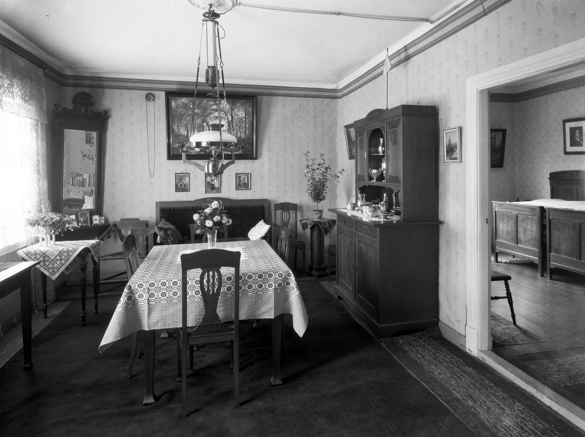Okänd lägenhet i Växjö. Interiör av matsal, och sovrum.