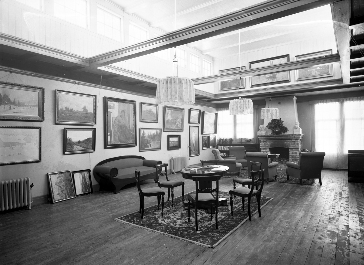 Troligen Ingelstads säteri, huvudbyggnaden. Salong med möbler och tavlor.