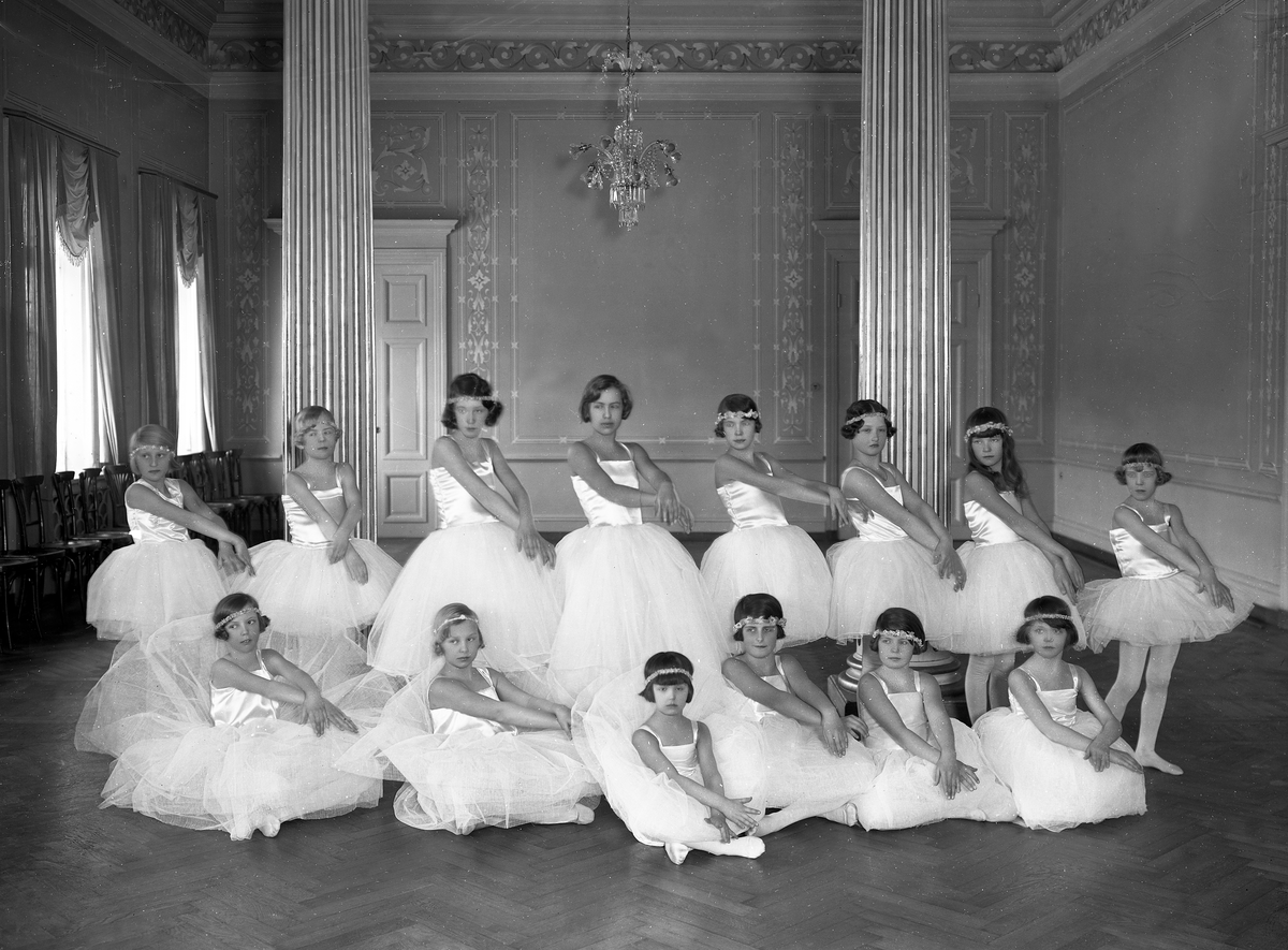 Unga dansöser i dansskola, 1931. Troligen från Växjö Stadshotell.