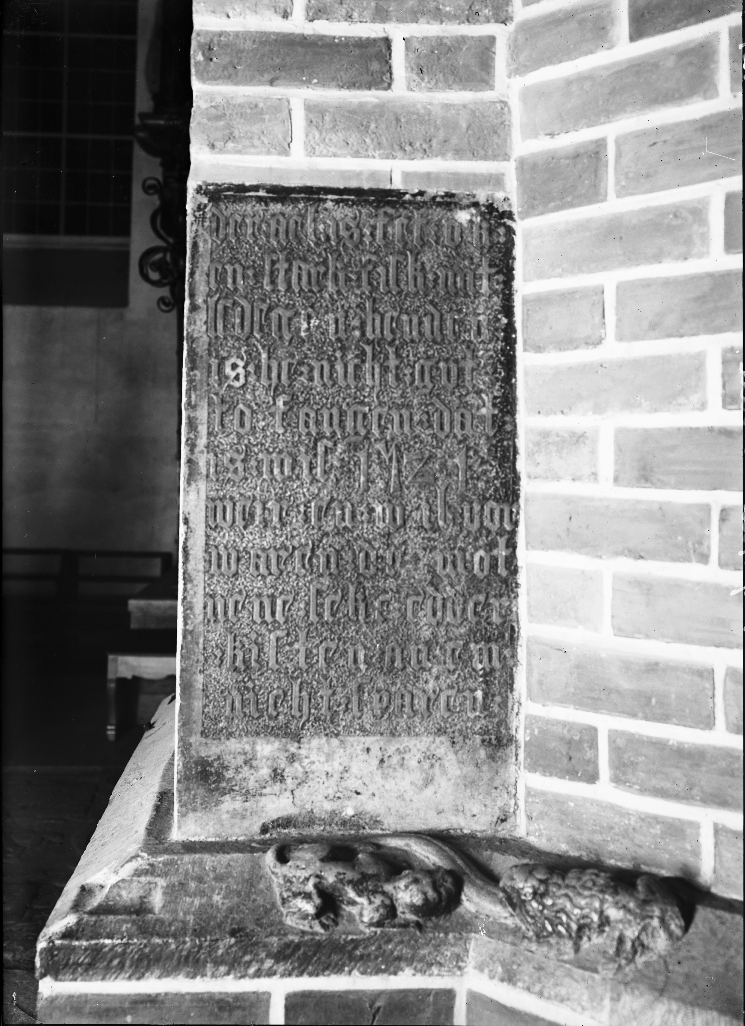 Pelare, "ålpelaren", med inskrift och skulptur av Adam van Düren, 1521.