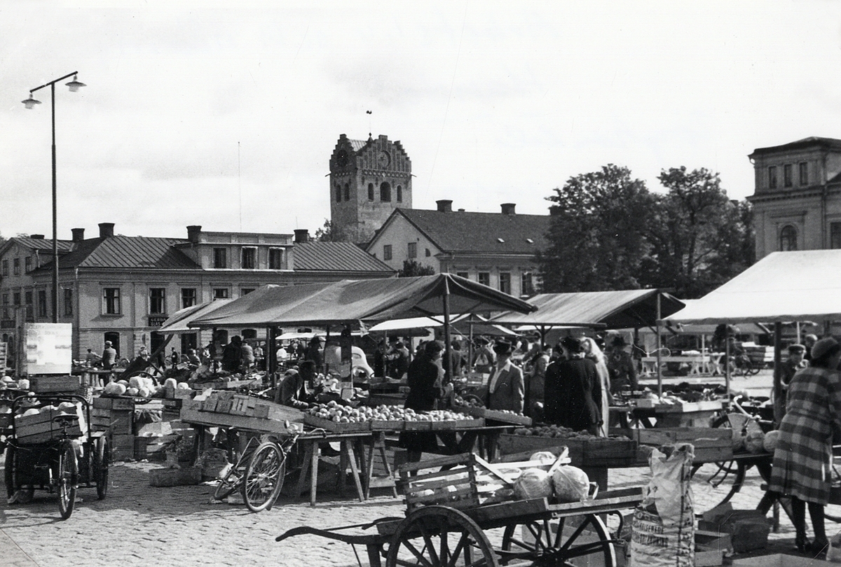 Torghandel på Stortorget, Växjö. Ca. 1950.