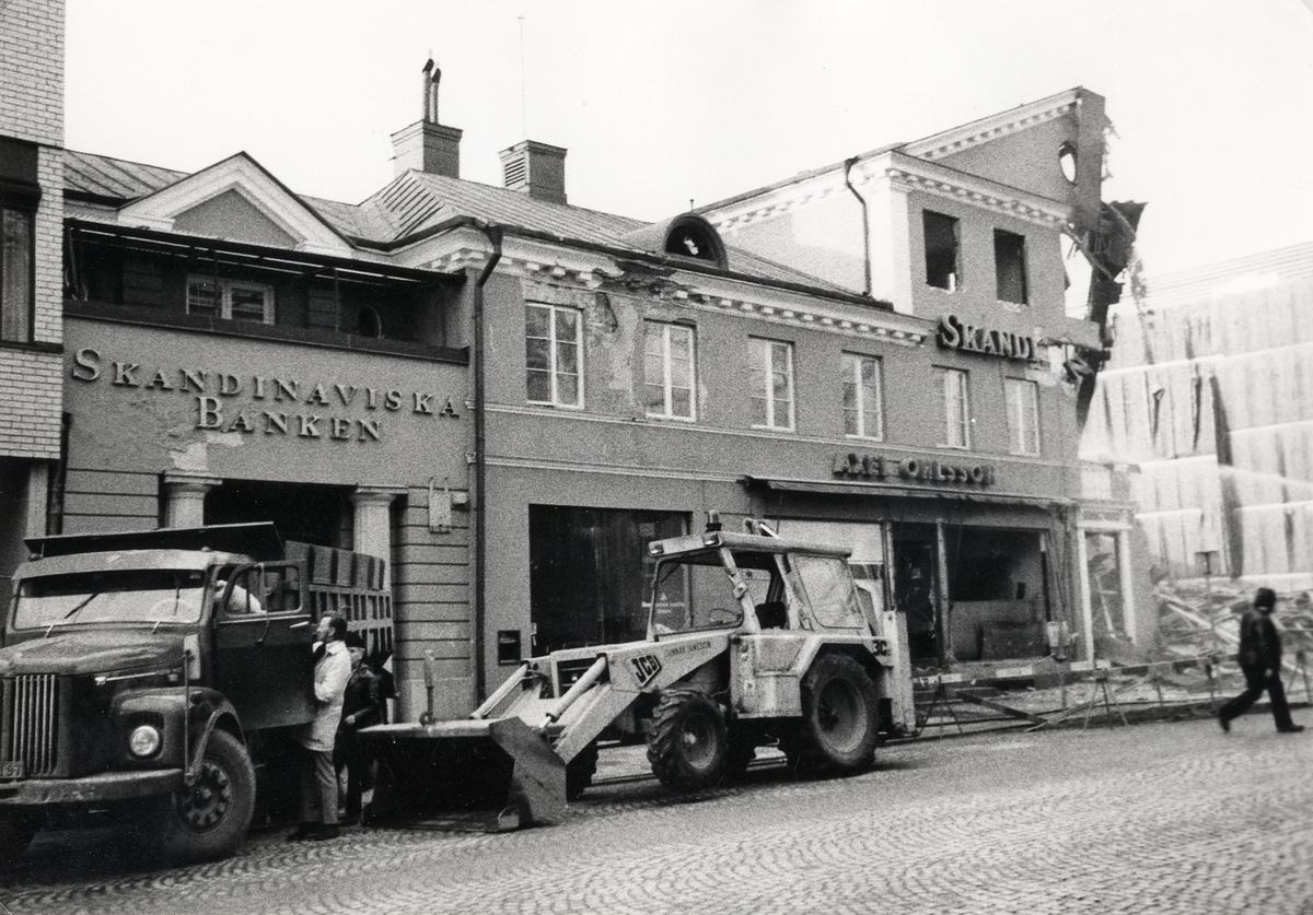 Rivning av Skandinaviska banken. 1973, Kungsgatan i Växjö.