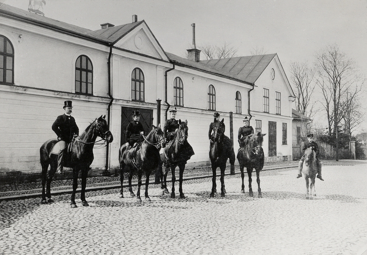 Ryttare framför Växjö ridhus på Norra Järnvägsgatan. 1896.
