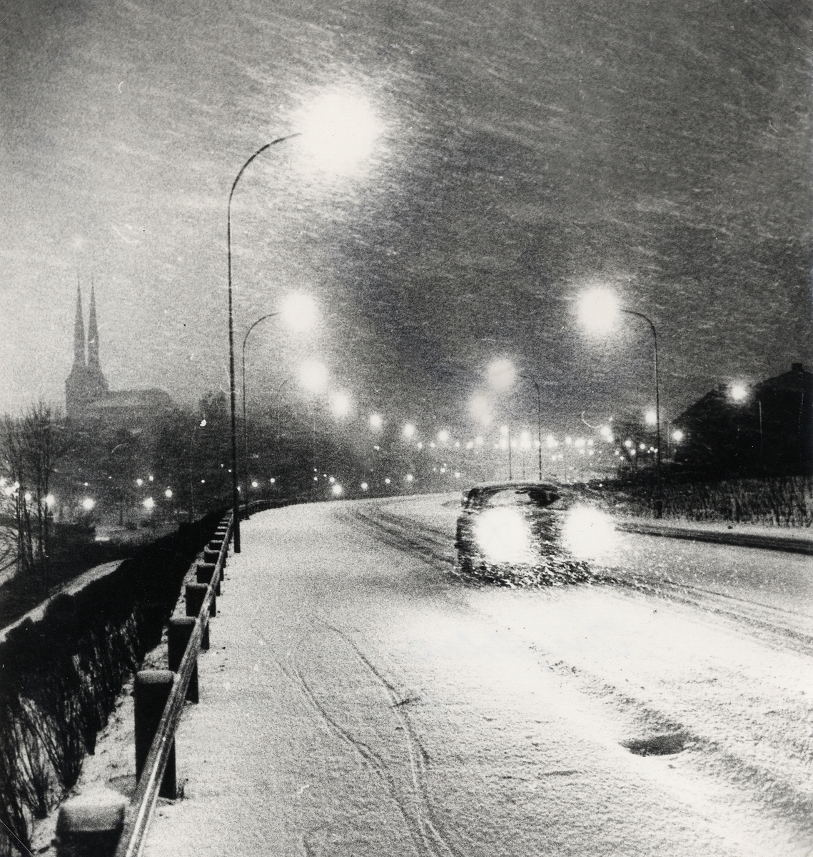 Snöyra på Teleborgsvägen, Växjö, ca 1970,